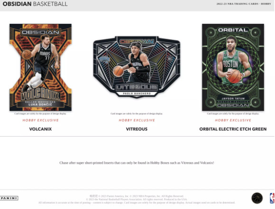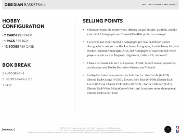 Configuration: 12 Panini Obsidian Basketball Boxes per 2022/23 Panini Obsidian Basketball Hobby Case, 7 Cards per Box