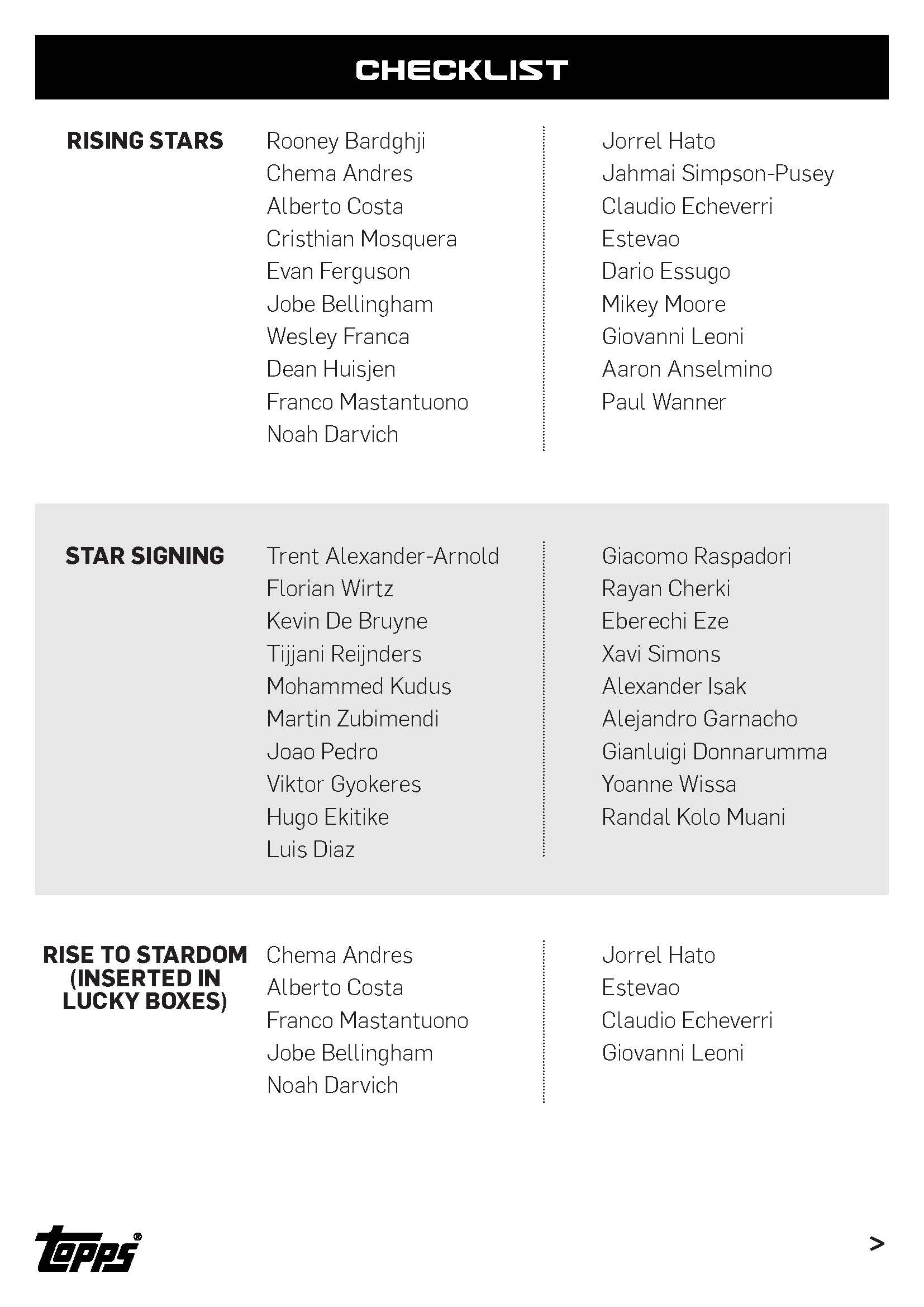Look out for Star Signings featuring European superstars plus Rising Stars including rookies and up-and-coming players. We’ve also added two new subsets for 2025. Firstly, there’s the short-print Rise To Stardom inserts featuring young players who have made the leap to the big time such as Estevao. Then there’s the Star Signing variations featuring unique imagery of players such as Eze, Diaz and Ekitike. Lastly, First Shirt relics return for a second season containing eight players and the very first shirt they wore for their new club.