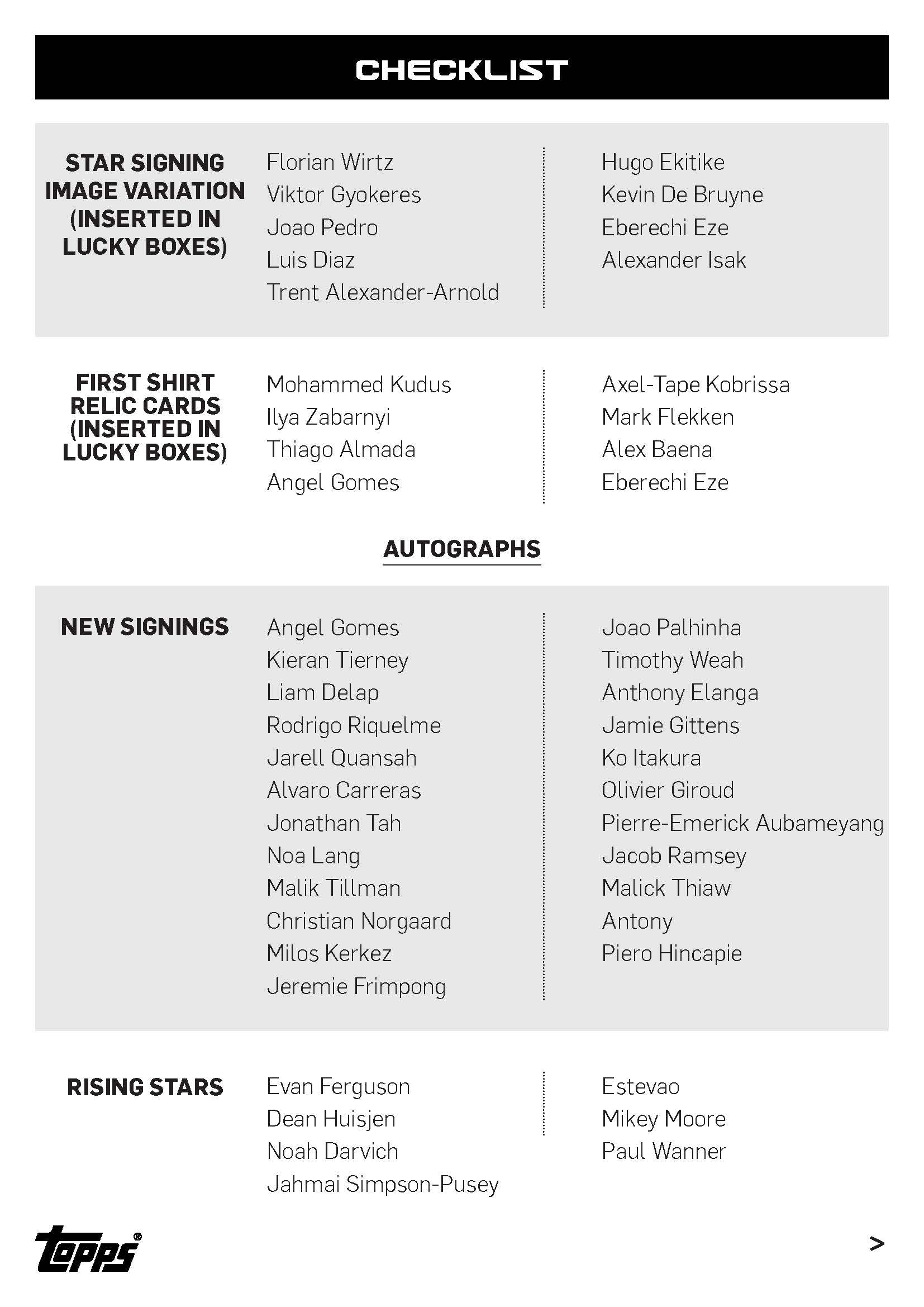 This 83-card card set highlights the biggest signings of the summer, featuring in new kits for the first time. From Alexander Isak to Gianluigi Donnarumma, Luis Diaz to Viktor Gyokeres, all the hottest transfers are included on incredible designs.